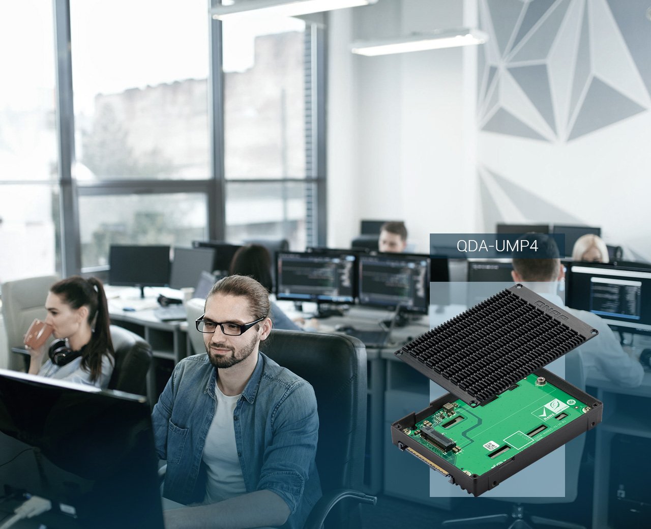 Адаптер для установки M.2 PCIe NVMe SSD в отсеки U.2Установите один или несколько адаптеров QDA-UMP4 в TDS-h2489FU, чтобы использовать SSD M.2 PCIe 4.0 x4 NVMe вместо U.2 SSD. Отслеживайте состояние и управляйте твердотельным накопителем с помощью QTS Storage & Snapshots Manager. Твердотельные накопители M.2, установленный в QDA-UMP4, поддерживает «горячую» замену. | ![]() |