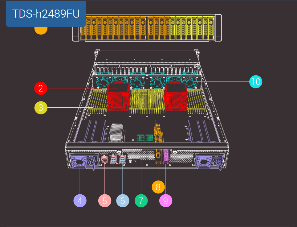 TDS-h2489FU оснащено передовой аппаратной базой с расширяемой архитектурой, чтобы предоставить высокую производительность и доступ с малой задержкой. Съемный блок материнской платы также упрощает обслуживание оборудования TDS-h2489FU.