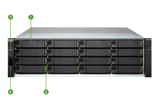 QES Storage Manager предлагает ряд полезных инструментов и опций для управления системным хранилищем с помощью интуитивно понятного графического пользовательского интерфейса, упрощающего процесс увеличения емкости NAS и управления модулями EJ1600. Администраторы с легкостью отслеживают состояние модуля EJ1600 и установленных в нем дисков. При каскадном соединении нескольких модулей расширения в стойке администраторы быстро находят нужный модуль или диск с помощью функций Locate Disk (Найти диск) и Locate Enclosure (Найти модуль).