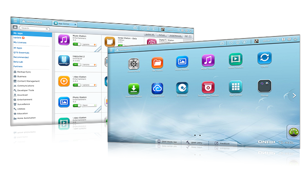 Модель IS-400 Pro включает в себя встроенный Центр приложений, который содержит большое количество приложений, разработанных QNAP и сторонними производителями, в том числе приложения для резервного копирования/синхронизации, выполнения бизнес-функций, управления контентом, связи, загрузки, развлечений и т.п. Центр приложений также является отправной точкой для управления установленными приложениями и их обновления. Платформа разработки QNAP поддерживает концепцию открытого исходного кода и приглашает разработчиков принять участие в создании разнообразных приложений, расширяющих функциональные возможности накопителя IS-400 Pro.