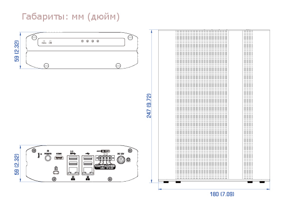 - Безвентиляторный промышленный дизайн, устойчив к вибрациям и внешним воздействиям;