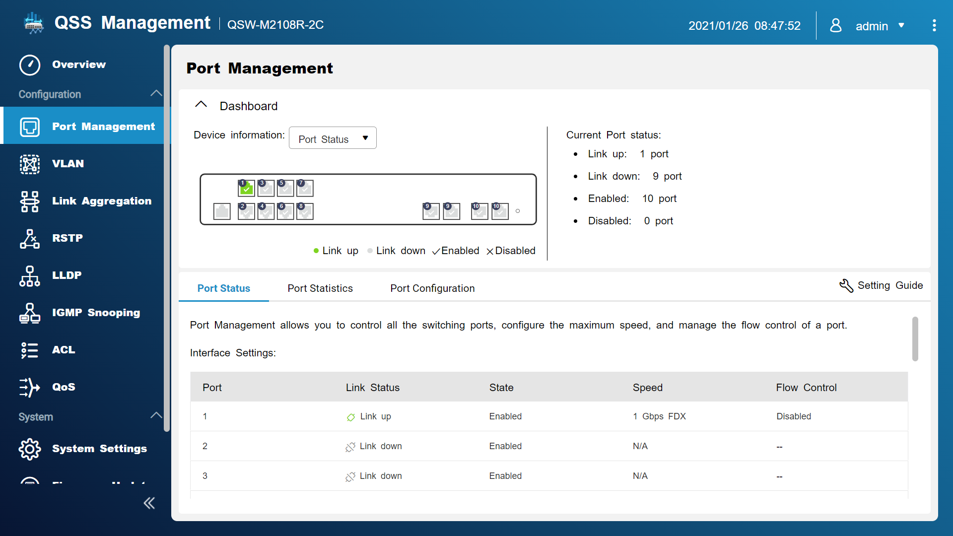 Руководство по настройке, таблица состояний и онлайн-обновление прошивки помогают легко настроить и работать с коммутатором.