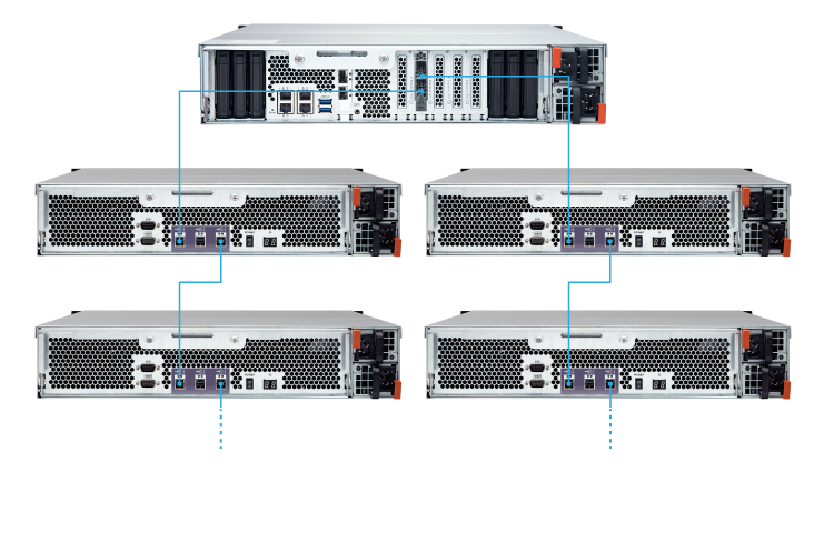 Просто подключите модуль REXP-1210U-RP к системе Turbo NAS* и включите питание. Система Turbo NAS обнаружит жесткие диски в модуле REXP-1210U-RP как вновь установленные локальные жесткие диски. Емкость Turbo NAS можно расширить «на лету» с помощью мощного инструмента QTS Storage Manager.