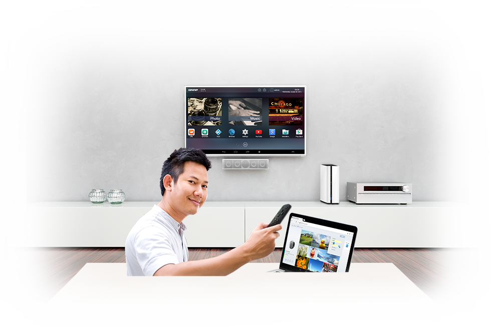 TAS-168 — первый сетевой накопитель с двумя ОС: QTS и Android. Фирменная QTS обеспечивает сетевой доступ и надежное хранение файлов, поддержку различных протоколов и сервисов, а также широкую функциональность для работы с мультимедиа. При этом Android отвечает за HDMI-интерфейс, при работе с которым доступны для запуска и установки приложения Google Play. Обе системы создают общую базу данных, что открывает доступ ко всем медиафайлам и документам для каждой из них. Так, при работе через HDMI для просмотра фото, проигрывания видео и музыки с накопителя можно использовать мобильные приложения QNAP, а к файлам, скачанным через любые Android-приложения, получить прямой доступ из QTS.