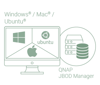 QNAP JBOD Manager — это утилита для мониторинга и управления модулем расширения TL-R400S при подключении к компьютерам Windows®, Mac® и Ubuntu®. С ее помощью вы можете получить статусы дисков, информацию о состоянии пула/тома, посмотреть скорость вращения вентиляторов и проверить наличие обновлений прошивки.