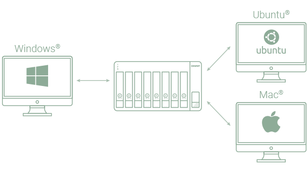 Расширение емкости NAS TL-R400S позволяет расширить емкость вашего сетевого накопителя QNAP. После подключения в диспетчере дисков можно настроить его подсистему в качестве отдельного пула или тома хранения, который станет доступен на сетевом накопителе. | Внешнее хранилище для вашего NAS Каждый диск можно использовать как отдельное пространство хранения, чтобы потом свободно заменять на новые, а старые возвращать при необходимости чтения или записи данных на них. Также можно устанавливать диски в другие устройства TL-R400S, чтобы физически переносить информацию. | Расширение пространства компьютера Модуль TL-R400S может быть подключен к компьютерам Windows®, Mac® и Ubuntu®, чтобы увеличить их дисковое пространство. Вы можете настроить конфигурацию RAID вашего TL-R400S для дополнительной защиты данных. |