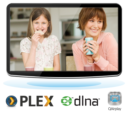 - Потоковое воспроизведение мультимедиа через DLNA, AirPlay и Plex;