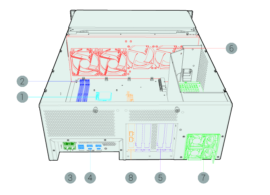 6. Блок вентиляторов, для охлаждения системы с интеллектуальным управлением охлаждением;