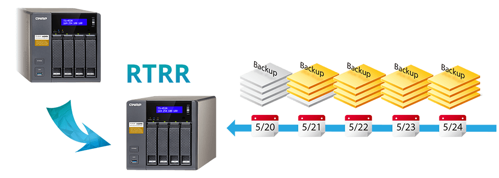 TS-253A предлагает различные варианты резервирования и восстановления данных. Служба RTRR (Real-Time Remote Replication) поддерживает резервное копирование данных в реальном времени или по расписанию с участием удаленного накопителя Turbo NAS или FTP-сервера. Также можно настроить синхронизацию файлов между локальной папкой и удаленной, что обеспечивает более высокую эффективность резервного копирования и сокращает время выполнения. Кроме того, TS-253A поддерживает протокол rsync для резервного копирования данных на удаленный сервер по расписанию. Дополнительно реализована возможность копировать данные в публичные облачные хранилища, такие как Amazon S3, ElephantDrive, Symform, Dropbox и Google Drive, после чего файлы можно в любое время восстановить из них на сетевой накопитель или другое ваше устройство.