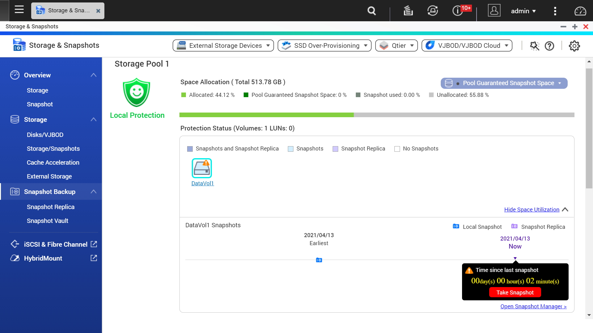 TS-262 поддерживает мгновенные снимки на блочном уровне, которые фиксируют состояние системы на определенный момент времени, чтобы защитить данные, а в случае необходимости восстановить их, что значительно снижает угрозу со стороны программ-вымогателей.