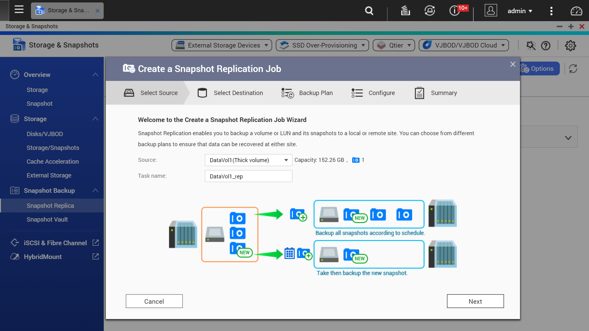 | Резервное копирование снимков | Усовершенствуйте защиту данных на основе резервных копий самих моментальных снимков! Реплицируйте моментальные снимки вашего TS-262 на удаленный NAS (реплика моментальных снимков), при этом будут скопированы только внесенные изменения. Это поможет сэкономить время и пропускную способность, а функция может быть запущена как вручную, так и по расписанию. |