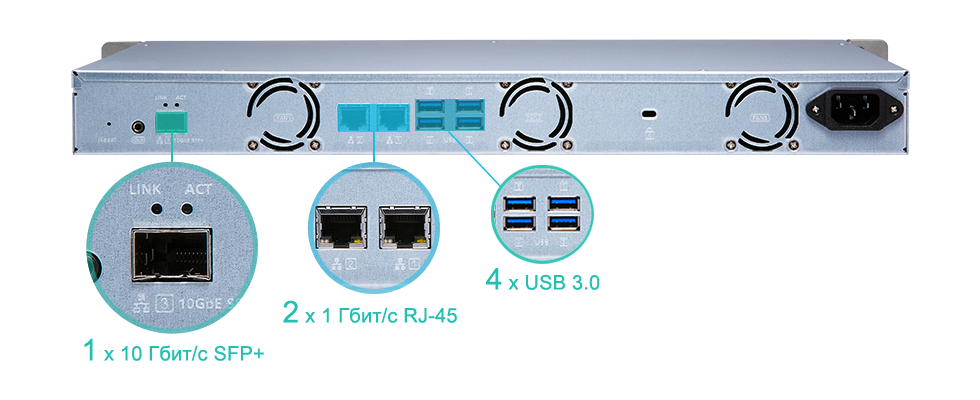 Модель экономичного класса TS-431XeU была специально разработана для работы в круглосуточном режиме, поддерживая различные схемы резервного копирования и совместного доступа. Поддержка различных конфигураций RAID и возможность горячей замены дисков гарантирует беспрерывную работу критически важных сервисов. Технология защиты RAID массива предотвращает потерю данных при случайном извлечении исправного диска в режиме восстановления массива. Несмотря на малые габариты, TS-431XeU оснащен 10 гигабитным портом SFP+, двумя гигабитными портами с поддержкой агрегации или отказоустойчивости и четырьмя портами USB 3.2 Gen 1 позволяющими расширить емкость за счет устройств расширения