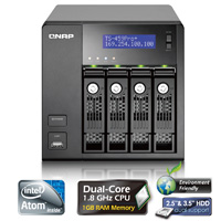 Сетевой RAID-накопитель с четырьмя отсеками для жестких дисков. Двухъядерный Intel D525 1,8 ГГц