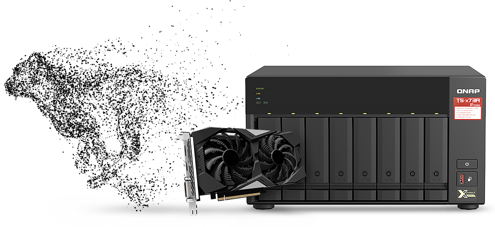 QNAP TS-873A оснащаются Слотами PCIe, что позволяет устанавливать современные графические карты начального уровня на базе чипсетов NVidia. Установка графической карты позволит увеличить скорость обработки изображений и видео не только в QTS, но и в виртуальных средах, благодаря технологии GPU passthrough.