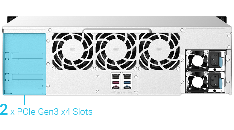 QNAP TS-873AU-RP оснащаются Слотами PCIe, что позволяет устанавливать современные графические карты начального уровня на базе чипсетов NVidia. Установка графической карты позволит увеличить скорость обработки изображений и видео не только в QTS, но и в виртуальных средах, благодаря технологии GPU passthrough.