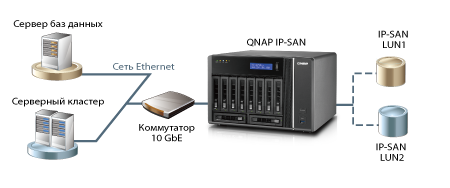 По мере увеличения объемов корпоративных данных и их ценности компании испытывают все большую потребность в безопасных, надежных и простых в управлении системах хранения данных. Устройство QNAP может использоваться как для создания IP -SAN с подключением по iSCSI, так и в качестве сетевой системы хранения данных (NAS).