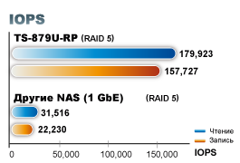 Встроенная в Turbo NAS поддержка iSCSI позволяет получить доступное решение IP-SAN для бизнеса. Сетевые накопители QNAP имеют высокие показатели обработки операций ввода-вывода, благодаря чему являются отличным решением для работы с такими приложениями, как базы данных и OLTP (онлайновая обработка транзакций). Поддержка высокоскоростного сетевого интерфейса 10 GbE позволяет устранить узкие места ввода-вывода и увеличить общую пропускную способность.