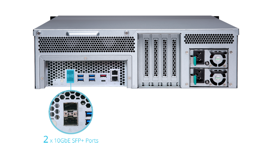 Сетевое хранилище TS-h1677XU-RP оснащено двумя 10-гигабитными портами SFP+ SmartNIC (с контроллером NVIDIA® Mellanox ConnectX-4 Lx SmartNIC) и поддерживают протокол iSCSI Extensions for RDMA (iSER), который обходит уровни драйверов и сокетов для прямого обмена блоками данных между оперативной памятью сервера ESXi и хранилища. Эта технология снижает нагрузку на центральный процессор и более эффективно использует имеющуюся полосу пропускания канала передачи данных. Применение NAS с поддержкой iSER является одним из инструментов, который оптимизирует работу приложений виртуализации.
