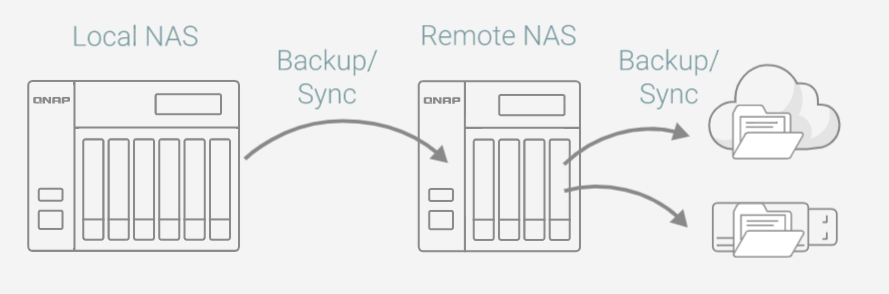 Hybrid Backup Sync упрощает резервное копирование данных с TS-h3087XU-RP на другой QNAP NAS или удаленный сервер, чтобы реализовать стратегию резервного копирования 3-2-1.
