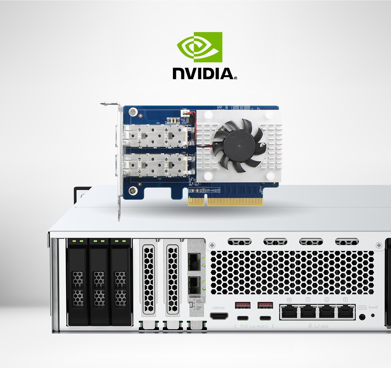 Базовая комплектация TS-h3088XU-RP предлагает сетевое подключение через двухпортовую карту 25 Гбит/c SFP28 SmartNIC, которые используют чипсет NVIDIA® Mellanox ConnectX-4 Lx SmartNIC. Благодаря аварийному переключению и объединению портов TS-h3088XU-RP расширит полосу пропускания вашей организации до 50 Гбит/с для решения самых требовательных приложений, таких как функционирование центров обработки данных, виртуализация, массовая передача файлов и трансляция мультимедиа, высокоскоростное резервное копирование и восстановление.