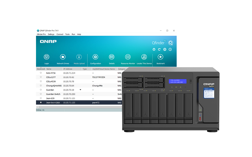 Qfinder Pro выполняет поиск и подключение к сетевым хранилищам QNAP, а также настраивает прямой доступ к общим папкам.