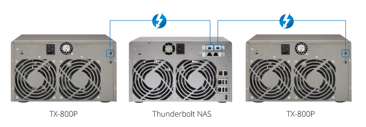 Установка нескольких дополнительных серверов для расширения дискового пространства хранилища может усложнить управление сетевой инфраструктурой и потребовать значительных затрат. Модуль расширения TX-500P является альтернативой решения этой задачи с быстрой интеграцией в существующую инфраструктуру и позволяет увеличить дисковую емкость вашего накопителя QNAP Turbo NAS Thunderbolt.